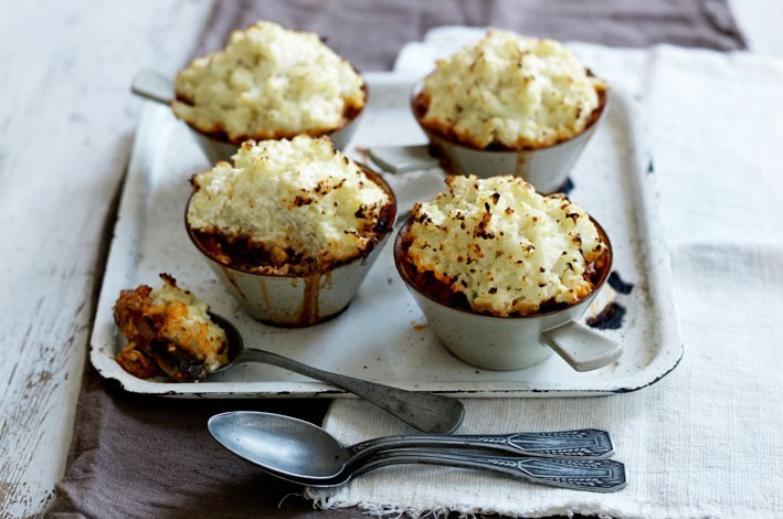 Preheat oven to 220°C/ 200°C fan forced. Grease 4 x 1 ½ cup capacity ovenproof ramekins. Spoon chicken and mushroom mix into four oven proof ramekins then spoon over the creamed cauliflower. Bake for 20-30 minutes until the cauliflower is golden. Serve.