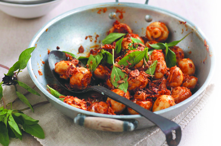 Add chilli jam and 1-2 tablespoons water if necessary (it will depend on the consistency of the jam). Stir fry 1-2 minutes until mushrooms tender. Remove from heat, add basil and eschallots and serve with beef, lamb or chicken.