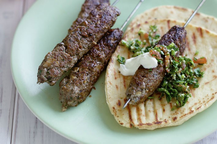 Preheat barbecue plate on medium-high. Spray the skewers with oil, turning to coat all sides. Barbecue for 10-15 minutes or until just cooked through. Spray the naan bread with oil and barbecue for 2 minutes each side or until warm. Serve the kofta with warm naan bread, yoghurt and tabouli.