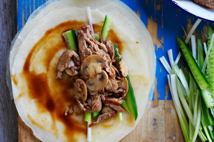 1 packet (about 350g) ready roasted Peking duck breast, thinly sliced