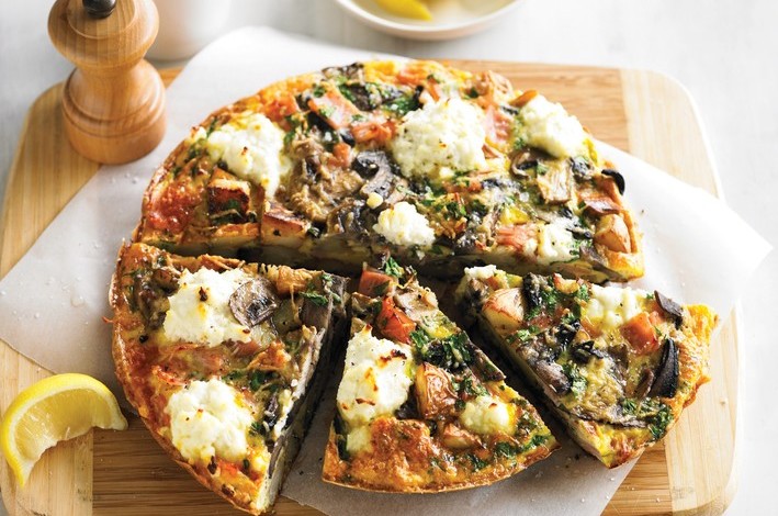Whisk the eggs in a bowl until well combined. Add parsley and season with pepper. Pour the egg over the mushroom mixture, gently shake the pan to allow the egg to run between the potato and mushrooms. Sprinkle with parmesan. Cook for 10 minutes or until the base and edges are firm but the top still a little soft. Remove from the heat. Spoon large dollops of ricotta over the frittata.