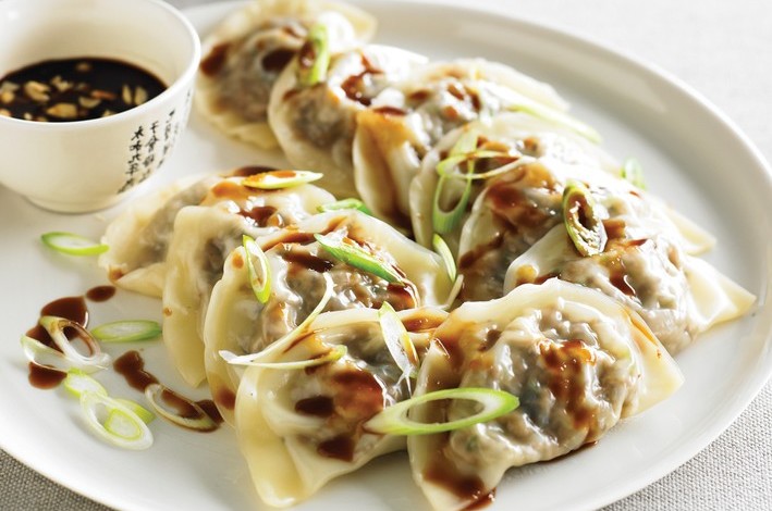 Brush half the gow gee lightly with water. Place 1 heaped teaspoon of mushroom duck mixture into the centre of one gow gee then fold in half to form a semicircle. Pinch edges together to seal.