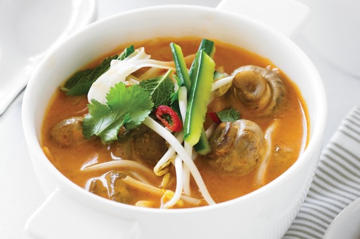 Add the mushrooms, reduce heat to medium and simmer uncovered 10 minutes until soup has reduced slightly. Combine the palm sugar and lemon juice and stir into the soup.