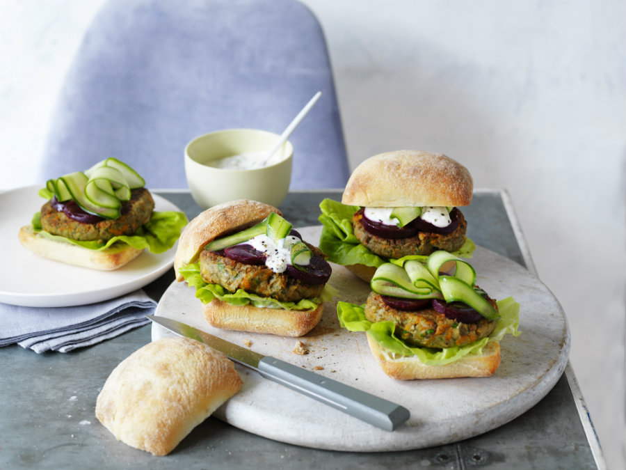 Place base of rolls on serving platter, spread evenly with yoghurt, top with lettuce, mushroom patty, cucumber and top of roll to serve.