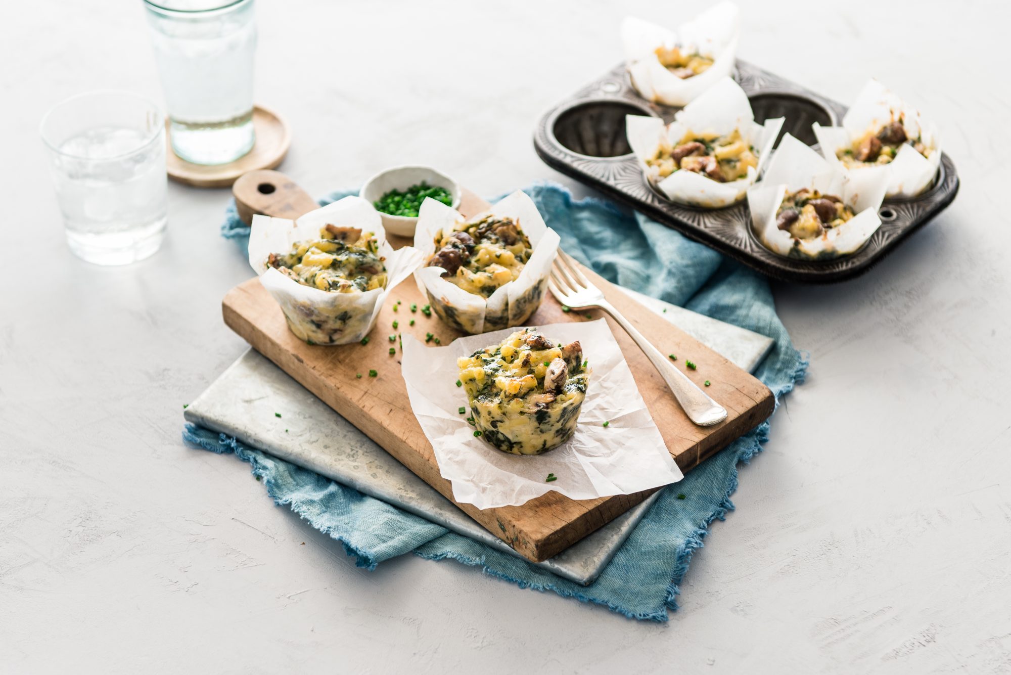 Season, sprinkle with chives and pour into a lightly greased standard muffin tray. Bake for 10 minutes.