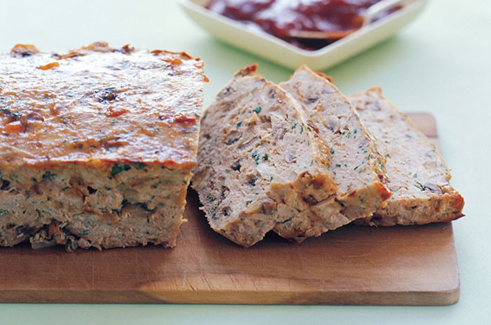 Add the pork mince, breadcrumbs, parsley, egg, salt and pepper and walnuts to the mushrooms. Mix until well combined. Spoon the mixture into the greased pan. Use your hands to press down firmly and smooth the surface. Bake for 40-45 minutes or until light golden and cooked through.