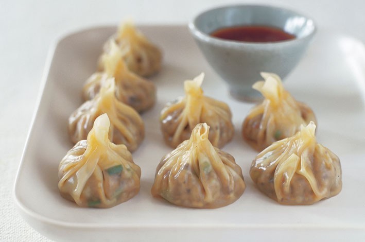 Half fill a large frying pan or wok with hot water & bring to the boil over high heat. Line a bamboo steamer with baking paper & arrange the wontons, 2cm apart, in the steamer.
