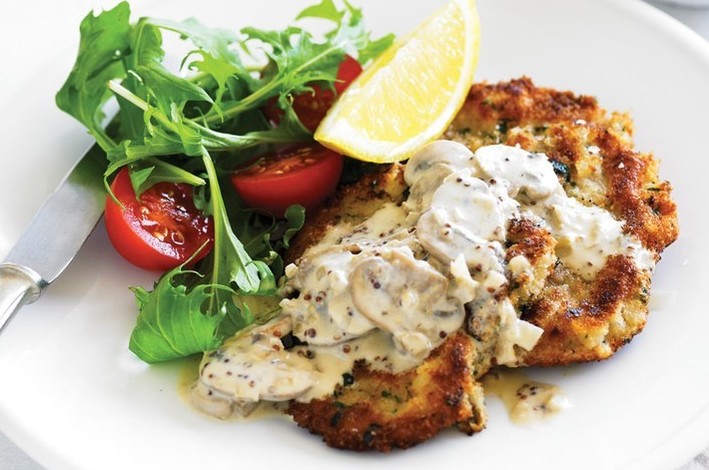 Heat half the oil in a large non-stick frying pan over medium-high heat. Cook the veal in batches for 4-5 minutes each side or until golden and cooked through.