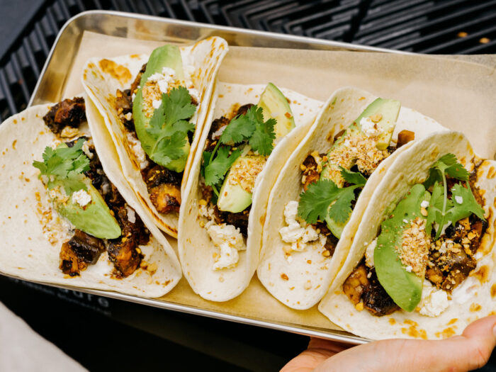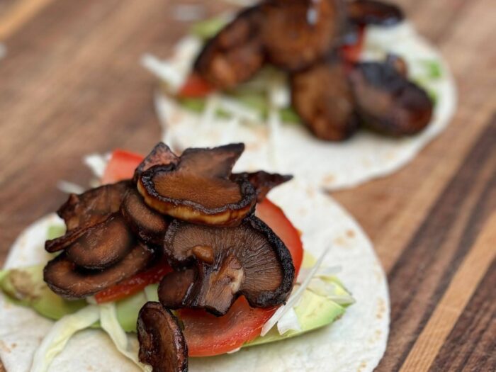 BBQChipotle Butter Mushroom Tacos | Justine Schofield Try this flavourful BBQ mushroom tacos recipe, packed with smoky, spiced flat mushrooms marinated in a blend of chipotle, cumin, and paprika.