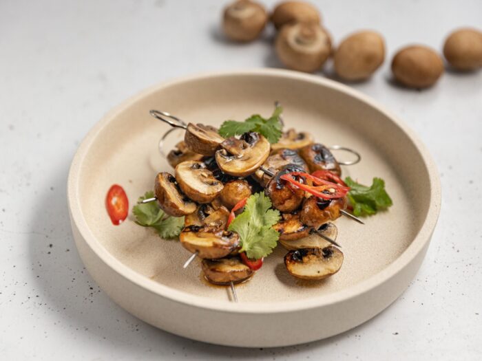 BBQHoney Soy Mushroom Skewers | Justine Schofield A flavourful and easy-to-make vegetarian dish. Juicy mushrooms marinated in a sweet and savoury honey-soy sauce, then grilled to perfection. Great for the BBQ.