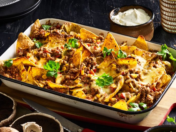 BlendabilityBest Ever Pork and Mushroom Nachos With Harissa and Smashed Avocado