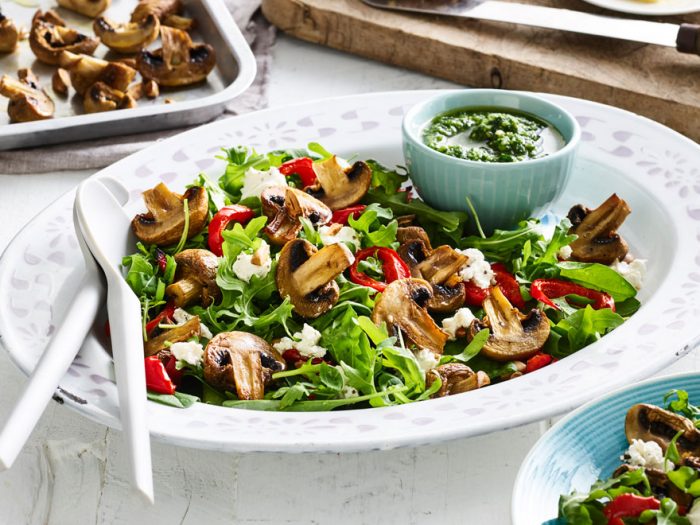 BlendabilityWarm Roasted Mushroom and Almond Pesto Salad