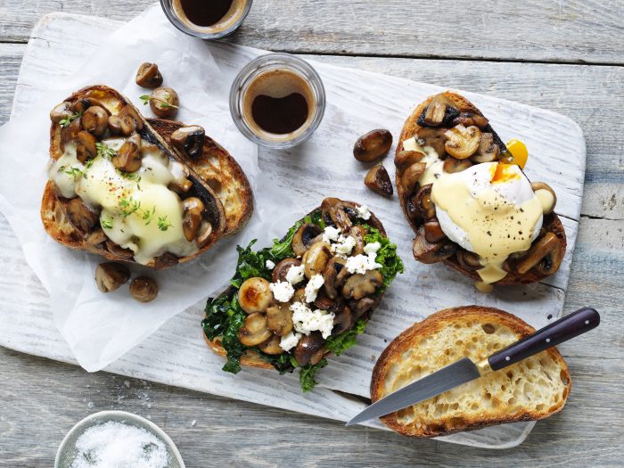 BreakfastSautéed Mushrooms on Sourdough 3 ways
