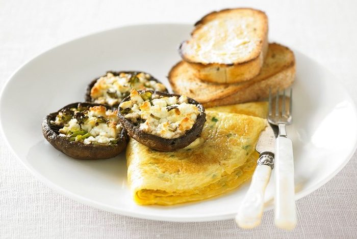 BreakfastFeta Baked Mushrooms with Herb Omelette
