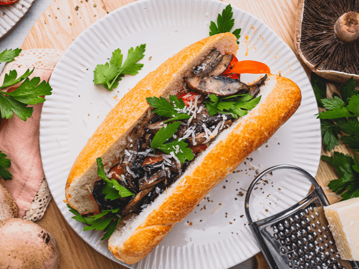 DinnerMushroom and Italian Sausage Baguettes Add a touch of delicious and nutritious Australian portobello mushrooms to your next sausage sizzle with these Italian-style sausage and mushroom rolls. We used crusty rolls, but you could also use hotdog or brioche rolls here.