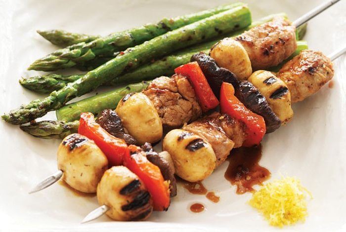 AsianMushroom Kushiyaki with Citrus Salt Pork & Chilli-Garlic Sauce